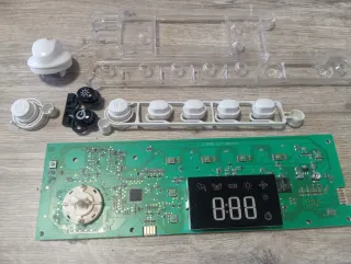 Placa base para secadora EDPE G45A1ECO. Componente electrónico con pantalla digital y varios botones. - Pantalla digital. - Botones de control. - Componentes electrónicos.