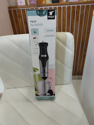 Batidora de mano Thulos de 1200W, modelo XL. Venta por cierre del negocio - Potencia de 1200W. - Cuchillas de acero inoxidable. - Vaso medidor de 500ml. - Diseño en color negro y plateado.