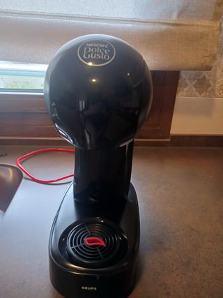 Cafetera Dolce Gusto de color negro. Su diseño moderno y compacto la hace ideal para cualquier cocina. - Depósito de agua transparente. - Base con rejilla de ventilación.
