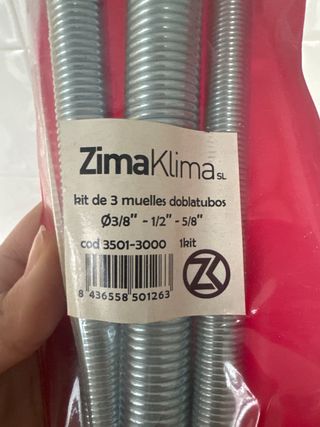 Kit de muelles doblatubos de la marca ZimaKlima. - Incluye muelles para tubos de 1/2, 5/8 y 3/4. - Código de producto: 30-20-3000.