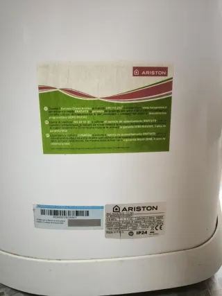 Bomba de calor Ariston de color blanco con detalles en negro. Modelo Nuos evo WH. 100 litros de capacidad. Gasta poquísima energía y es muy eficiente. Empezó a dar error marcando la temperatura y a marcar temperaturas altas y, por tanto, no calentaba lo suficiente. Nos corría mucha prisa arreglar y al no poder venir el técnico pronto decidimos cambiarlo. Pero es una muy buena máquina que, seguramente, tenga arreglo fácil. Precio a convenir.
