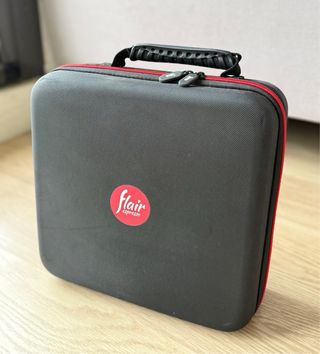 Cafetera manual Flair Pro 3 en color negro. Diseñada para preparar espressos de alta calidad en casa. - Incluye manómetro para control de presión. (lleva el plástico protector aún, esta en perfectas condiciones) - Base con rejilla para tazas. - Cabezal extraible para separar todas las piezas y enjuagar fácilmente. - Incluye el maletín para transportarlo cómodamente.