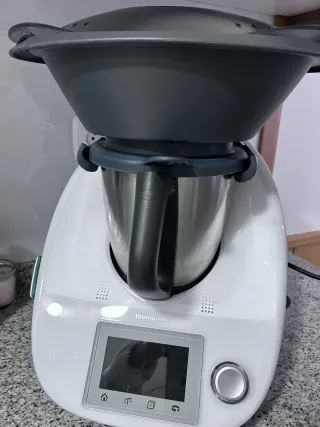 Robot de cocina Thermomix TM5 de Vorwerk. Diseño moderno y funcional. - Color blanco. - Pantalla táctil. - Dial giratorio. Viene con libro de recetas La cookidoo a veces falla, no sabemos si és la connexion o el cookidoo la pieza. La thermomix en si está como nueva.