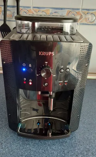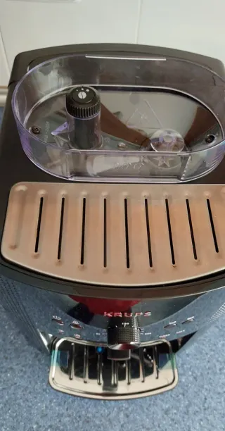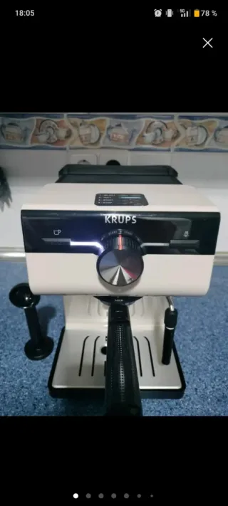 Cafetera de la marca Krups. - Diseño moderno en color blanco y negro. - Panel de control con dial giratorio. - Bandeja recogegotas. - Vaporizador lateral. No dispongo de la caja.