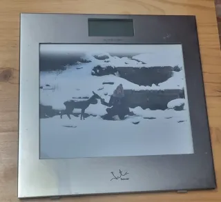 Báscula digital de la marca Jata con un diseño moderno y elegante. - Pantalla LCD. - Superficie de cristal. - Indicador de batería baja. -Personaliza con la foto que maste guste. -Opcion de poner como un marco de fotos, colgar en pared o dejar sobre el suelo.