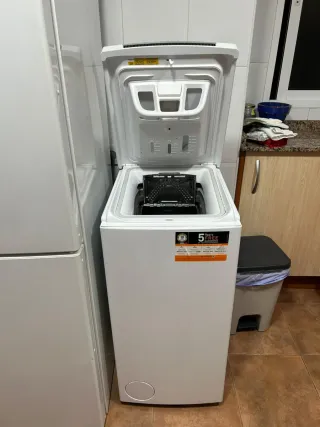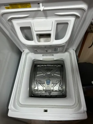Lavadora blanca con carga superior. Diseño moderno y funcional para tu hogar. La lavadora tiene un pequeño desgaste en la tapa, es lo único que tiene pero no afecta su función. Funciona perfectamente - Color blanco. - Apertura superior. - Panel de control intuitivo.