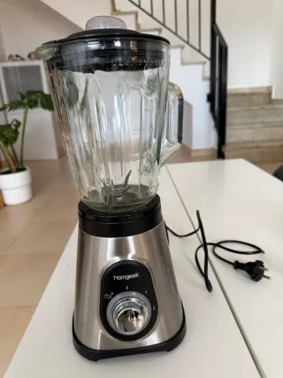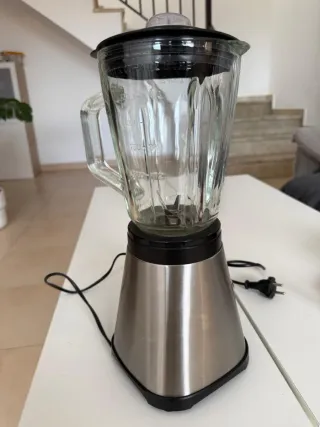 Licuadora de sobremesa con base de acero inoxidable y jarra de cristal. - Base de acero inoxidable. - Jarra de cristal. - Controles de velocidad y pulsador.