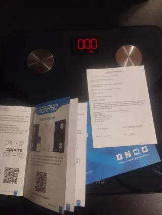 Báscula digital RENPHO con diseño moderno. - Superficie de cristal templado. - Plataforma amplia. - Sensores de alta precisión.
