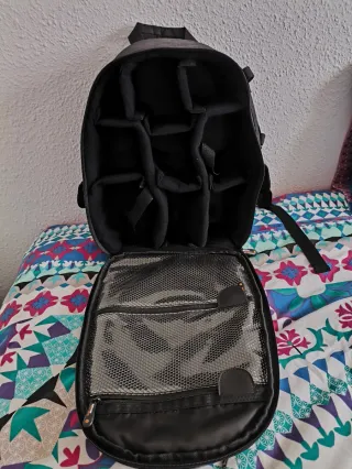 Mochila para Cámara de Gran Capacidad con Acolchado Interno para DSLR y Accesorios, Impermeable y Resistente a los Golpes. Fabricada en resistente poliéster y nailon Suave interior acolchado de tricot para proteger tu cámara réflex y accesorios Separadores ajustables con velcro para personalizar tus opciones de almacenamiento Nueve compartimentos interiores para accesorios Tamaño: 37 x 28 x 15,5 cm (exterior), 34,5 x 26,7 x 11 cm (interior) (l x an x al) La construcción impermeable protege tu valioso equipo de la lluvia, asegurando un rendimiento confiable incluso en condiciones climáticas adversas.