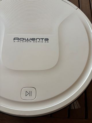 Robot aspirador Rowenta X-plorer Serie 45 en color blanco. - Diseño redondo. - Botón de control con icono de play/pausa.