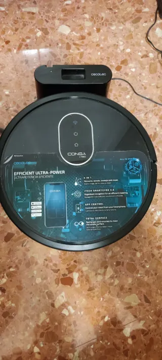 Robot aspirador Cecotec Conga 1790 Titanium, diseñado para una limpieza eficiente y potente. - Tecnología iTech SmartGyro 3.0 para una navegación inteligente. - Control total a través de la app para gestionar la limpieza desde tu smartphone. - Capacidad de aspirar, fregar, barrer y pasar la mopa. - Sistema Total Surface para que el robot recargue y reanude la limpieza hasta cubrir toda la superficie. *Conserva la caja original y todos los accesorios* *Se vende porque no se lleva bien con mi 🐶,una pena❤️🩹 porque es muy eficiente*
