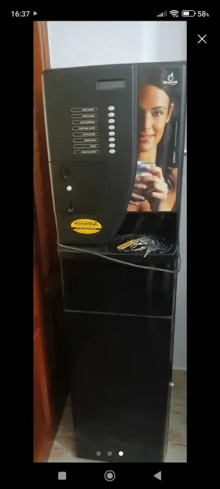 Cafetera profesional Bianchi, ideal para negocios. - Diseño moderno en color negro. - Panel de selección de bebidas. - Incluye compartimento para llaves.