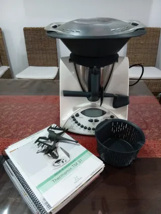 Robot de cocina Thermomix TM 31 en color blanco. - Incluye libro de instrucciones Manual de instrucciones Thermomix TM 31. - Incluye cestillo. - Incluye accesorio mariposa.
