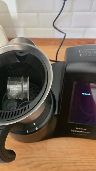 Con todos los todos los complementos. Precio nuevo en tienda: 850€ Características Velocidad: 10 / + Turbo Características: Conectividad Wi-Fi, Actualización automática (recetas y software sistema), Monitorización remota del estado de Mycook y avisos. Depósito: 2 litros Dimensiones: 36 x 55 x 42 cm Funciones: Sofrito, Función Balanza de alta precisión, Picar, Moler, Triturar, Emulsionar, Caldos, Cocción pasta, Cocina al vapor y Amasar. Temperaturas: Maximo 140 º C