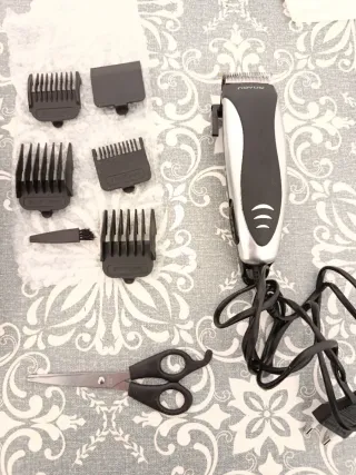 Máquina cortapelo eléctrica Novus con varios accesorios para diferentes longitudes. - Incluye peines guía de diferentes tamaños. - Cepillo de limpieza. - Tijeras. - Funda para guardarlo todo.