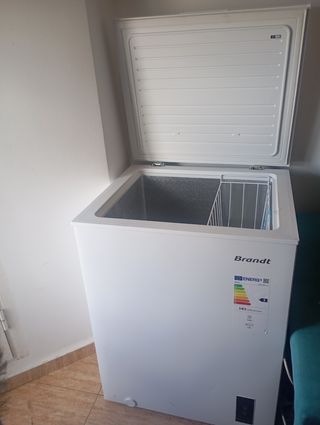 Congelador horizontal Brandt con etiqueta energética E. - Capacidad de 142 litros. - Consumo de 182 kWh/año. - Nivel de ruido de 41 dB. #ladăfrigorifică