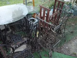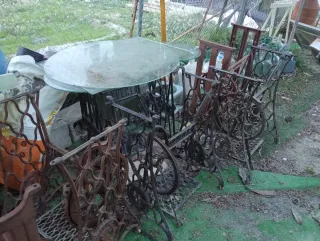 Conjunto de bases de hierro fundido para máquinas de coser antiguas. Piezas con un diseño intrincado y robusto, ideales para restauración o decoración. - Material: Hierro fundido. - Estilo: Victoriano. - Color: Óxido/Negro. Recogida en mano a poder ser. El precio depende según modelo de 30 a 50eu