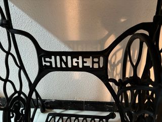 Máquina de coser Singer de estilo antiguo, una pieza clásica para coleccionistas o amantes de la costura tradicional, con su soporte original. Ideal para colección o decoración. Se encuentra en buen estado para sus años, aunque muestra señales del paso del tiempo. - Diseño icónico de Singer. - Base de hierro forjado con detalles ornamentales. - Mesa de madera con superficie desgastada por el tiempo. - Perfecta para los amantes de lo vintage.