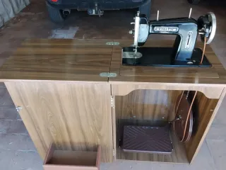 Máquina de coser Sigma clásica, ideal para coleccionistas o amantes de la costura vintage. Se encuentra dentro de un mueble de madera que la protege y facilita su almacenamiento. Incluye pedal, que facilita enormemente la costura.
