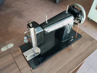 Máquina de coser vintage de la marca Wertheim. Un clásico para los amantes de la costura. - Diseño retro en tonos beige y gris. - Construcción robusta con partes metálicas y plásticas.