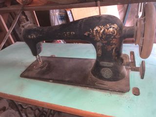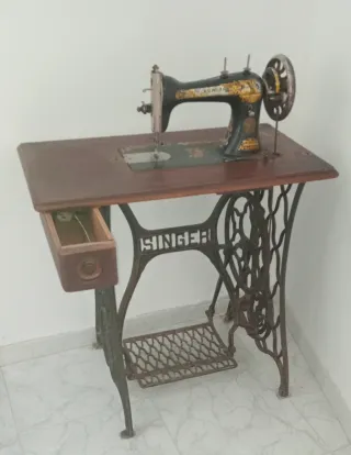 Preciosa máquina de coser Singer de 1912, un auténtico tesoro para coleccionistas y amantes de lo vintage. Su diseño clásico y robusto la convierten en una pieza decorativa única. - Máquina de coser Singer. - Modelo de 1912. - Base de hierro fundido con detalles ornamentales. - Mesa de madera. - No se incluyen accesorios de costura ni piezas de cerámica que se ven en la foto.