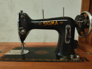 Máquina de coser antigua de la marca Sigma, en perfecto estado de funcionamiento. - Diseño clásico y robusto. - Incluye pedal y mueble.