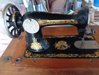 Máquina de coser Singer de época, fabricada alrededor de 1920. Un objeto con un diseño clásico y detalles ornamentales dorados. - Modelo Singer. - Decoración dorada. - Rueda lateral. - Base de madera. La Singer está en Pinoso a 60 km de Alicante. Si interesado quiere envío se preguntará a Wallapop para ver precios yforma de transporte.