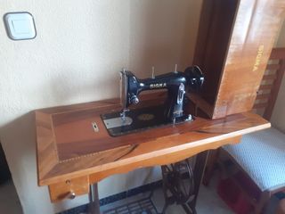 Se vende maquina de coser antigua , está dentro de su mueble que está en perfecto estado . Si se requieren más fotos se pueden hacer