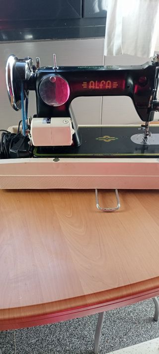 Máquina de coser antigua marca Alfa con mueble en buen estado.