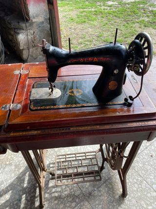 Preciosa máquina de coser Alfa antigua, ideal para coleccionistas o amantes de las piezas vintage. Se encuentra en buen estado de conservación, considerando su antigüedad. - Marca: Alfa - Mecanismo de funcionamiento visible - Pieza única de colección Falta la tabla donde va insertada la maquina de coser.