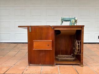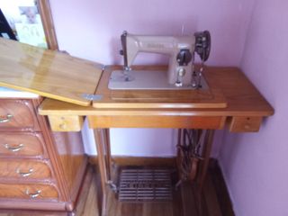 Máquina de coser antigua. Tiene motor, pedal y se conserva en el mueble original. Precio negociable.