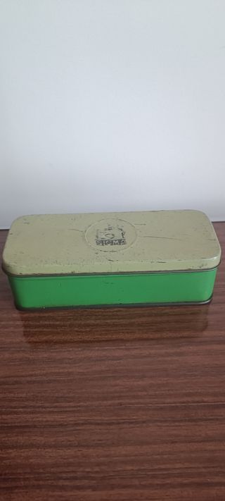 Preciosa caja metálica antigua de una máquina de coser Singer. Ideal para coleccionistas o para guardar pequeños objetos. - Está en buen estado, aunque presenta señales normales de uso y paso del tiempo. - La pintura es de color verde claro y verde oscuro Perfecta para decoración vintage.las medidas en las fotos