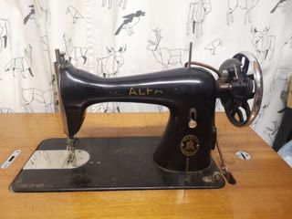 Máquina de coser antigua de la marca ALFA, con su tapa de madera. 90*75*43 - Diseño clásico. - Incluye tapa protectora de madera con asa. -Desgaste por antiguedad (ver fotos)