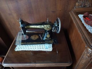 Preciosa máquina de coser Singer de 1894, en buen estado de conservación aunque con evidente signos de desgaste por los años que tiene.Ideal para coleccionistas o amantes de artículos antiguos. - Modelo Singer de 1894.(Según numeración) - Decorada con detalles dorados. - Incluye mueble de madera. - Viene con "Manual" aunque está bastante deteriorado.