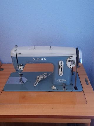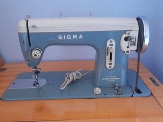 Antigua maquina de coser de la marca SIGMA. Funciona perfectamente, con mueble y todo en muy buen estado. Incluye instrucciones originales de la epoca.