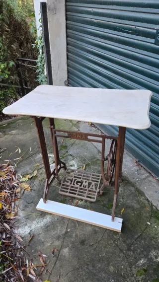 Mesa antigua original SIGMA, base de hierro fundido con pedal y volante originales. Tablero superior de mármol claro en buen estado. Ideal como: • Mesa decorativa • Consola • Mesa auxiliar • Proyecto de restauración • Estilo industrial /vintage Estructura sólida v estable. Pieza auténtica y cada vez más difícil de encontrar. Dimensiones (aprox.) estructura72x42x53 cm Peso 18kg Mesa 80x47x1,6 cm Peso19kg mesa antigua, máquina de coser antigua, sigma, mesa vintage, mesa industrial hierro fundido, mesa retro, decoraciór vintage, mármol, mesa restauración, antigüedades, mueble antiguo