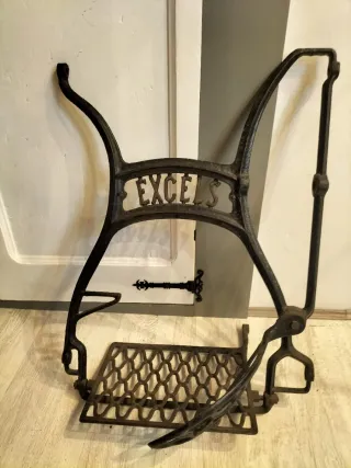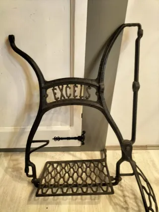 Base de hierro fundido para máquina de coser antigua, con la inscripción Excels y pedal. - Fabricada en hierro fundido. - Diseño con pedal. - Pieza central para máquinas de coser.