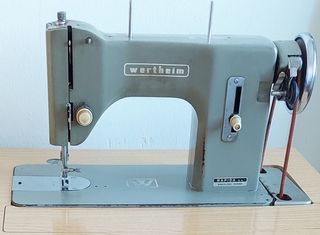 Máquina de coser antigua de la marca Wertheim, fabricada en los años 60. Un objeto con un diseño clásico y robusto. -Cuerpo pricipal de metal. -Comprada en Rápida S.A. (Barcelona) -Con mueble para guardarla. -Necesita un buen repaso para poder coser. -Para coser o como decoración vintage.