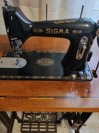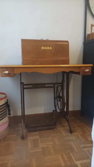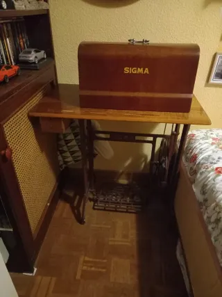 Máquina de coser antigua de la marca Sigma, con su mueble y pedal. Todo original, funciona perfectamente. Hay que recogerla en el viso de san juan. - Estructura de metal. - Cubierta de madera. - Diseño clásico.
