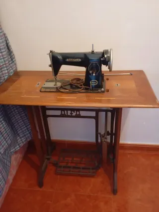 Máquina de coser clásica con base de madera y estructura metálica. - Diseño vintage. - Ideal para coleccionistas o decoración. - Muebles incluido. - Ubicado en un pueblo de Granada. Si te interesa podemos negociar.