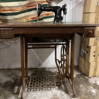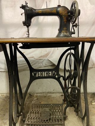 Preciosa máquina de coser Antigua Wertheim. Funciona perfectamente y cose. Incluye tapa de madera, mesa maziza, pedal en perfecto estado.