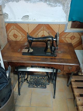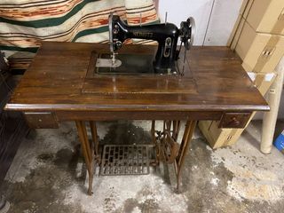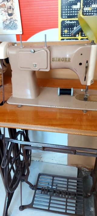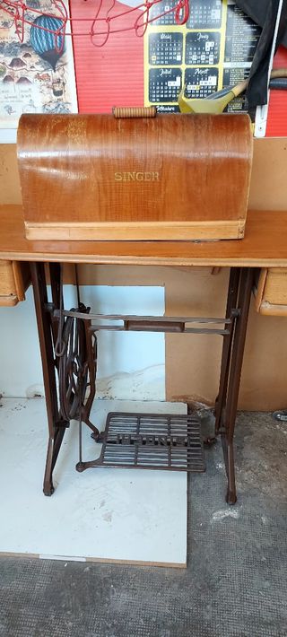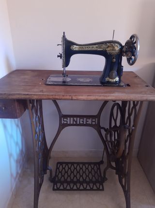 Preciosa máquina de coser Singer antigua, ideal para coleccionistas o amantes de la costura vintage. Se encuentra en buen estado de conservación. Funciona perfecta. - Máquina de coser Singer de funcionamiento manual. - Incluye mueble de madera con pedal. - Diseño clásico y elegante. - Medidas apunto de trabajar 109x43x100.