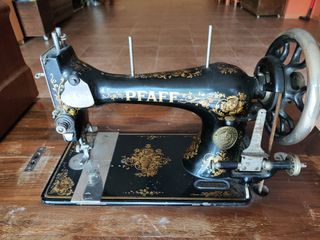 Preciosa máquina de coser Pfaff antigua, con detalles dorados. Se encuentra en buen estado de conservación y funciona a la perfección. - Modelo Pfaff. - Decorada con motivos florales dorados. - Pieza única para coleccionistas. Solo trato en persona y recogida en la población de Guissona ( Lleida).