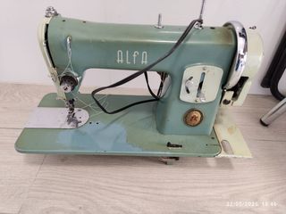 Se vende máquina de coser antigua de la marca Alfa, con su maletín de madera. - Incluye pedal. - Maletín de madera con asa. - Diseño clásico.