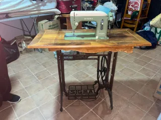 Máquina de coser antigua de la marca Sigma, con su mueble de madera. máquina de coser antigua de la marca Sigma, un artículo clásico de colección fabricado por la empresa española Estarta y Ecenarro. Modelo: Es un diseño vintage conocido por su robustez y construcción metálica. Fabricante: Producida originalmente en Elgoibar, España. Estado: Las unidades conservadas suelen ser valoradas por su durabilidad y capacidad para trabajos pesados en diversos tipos de telas. - Mueble de madera con tapa abatible. - Incluye accesorios. - Diseño clásico.