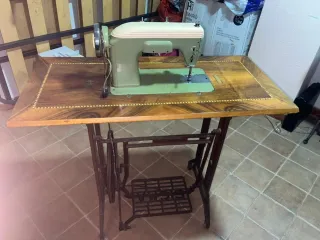 Máquina de coser antigua 1970 con mueble