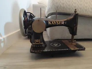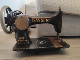 Preciosa máquina de coser antigua de la marca Kayser. - Diseño clásico en metal. - Detalles dorados. - Fabricada en Kaiserslautern.