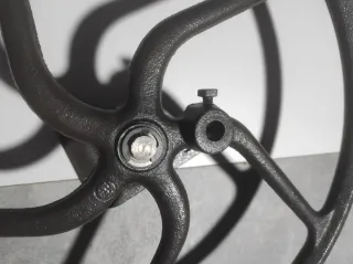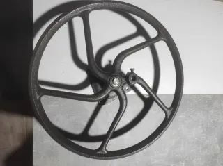 Polea de hierro de forja de antiguas máquinas de coser singer funcionales a pedal, está nueva intacta conservado su esmaltado marrón clásico, mide 32 centímetros circunferencia y 2198gr. Hago envíos