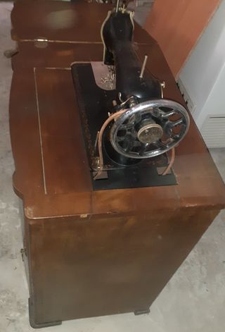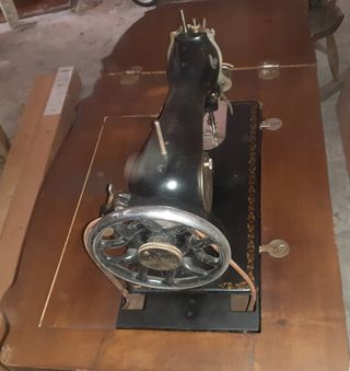 Antigua máquina de coser Singer a pedal. Por número de referencia es de 1921. Funciona a la perfección y está muy cuidada. Viene con mueble de madera original. Medidas 75 altos 40 ancho 75 alto.