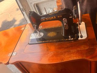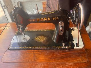 Preciosa máquina de coser Sigma, de segunda mano, en buen estado. Ideal para costura y coleccionistas. - Modelo antiguo con detalles estéticos únicos. - Estructura de madera y metal resistente. - Incluye mueble de madera.